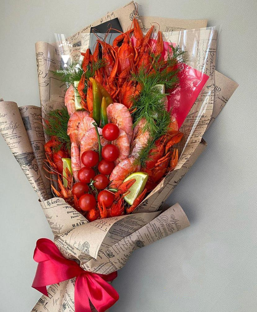 он для особого случая, и он превзошел все мои ожидания! Раки были свежими и нежными, а лимон и черри добавили освежающую кислинку и сладость. Зелень придала букету свежий аромат. Букет был красиво оформлен и стал настоящим украшением стола. Все гости были в восторге от этого необычного и вкусного подарка!